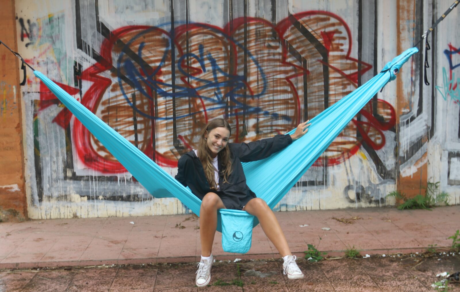 Weighing just 480 grams it’s an excellent hammock to throw in your bag when going out, combine it with the Nautical Quality Rope Kit or the fabulous Moonstraps to have everything you need for a little impromptu hanging out.